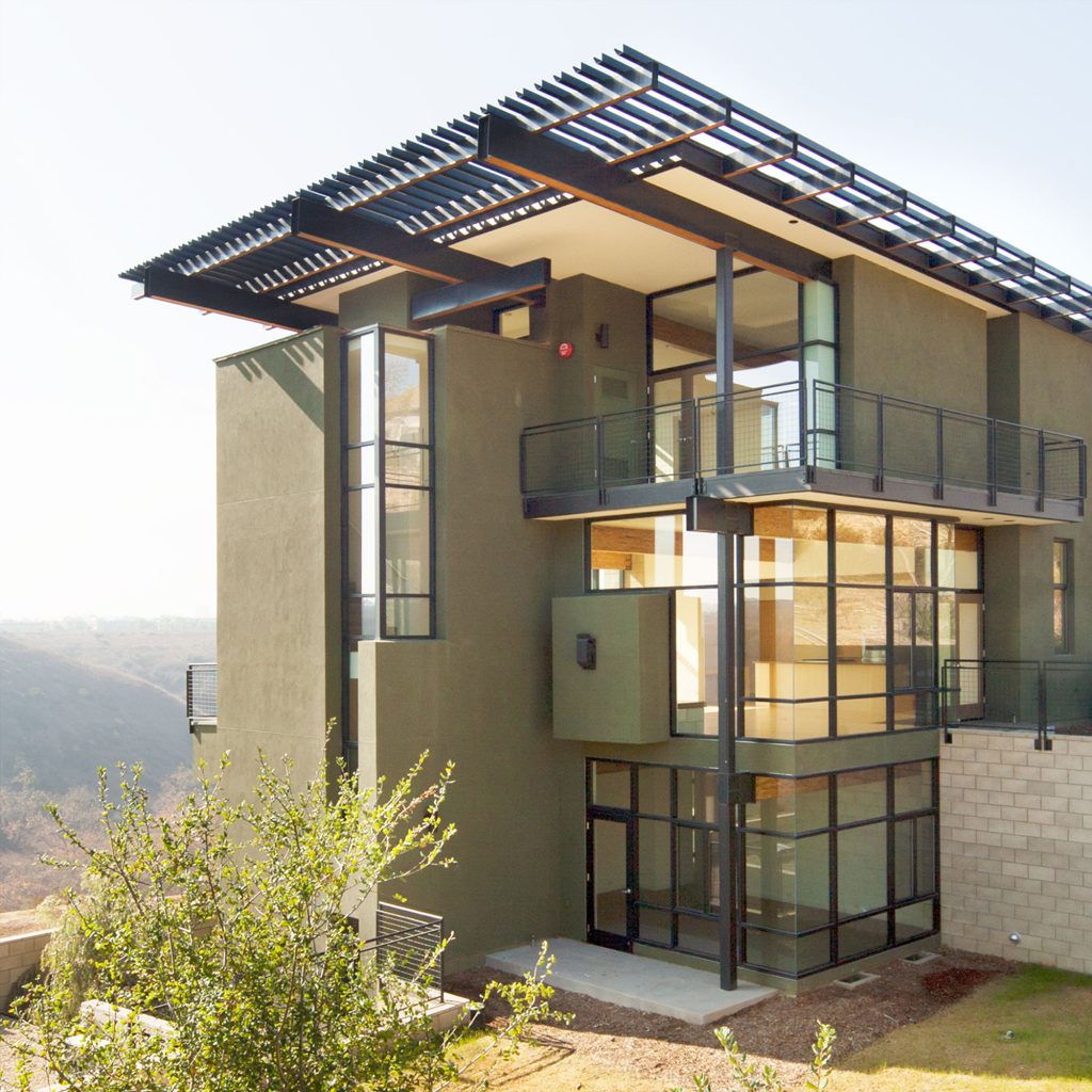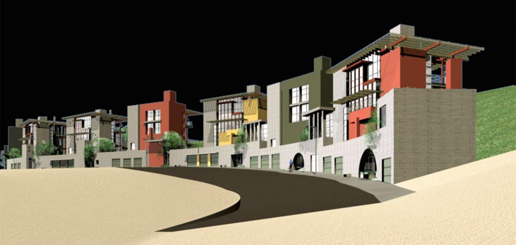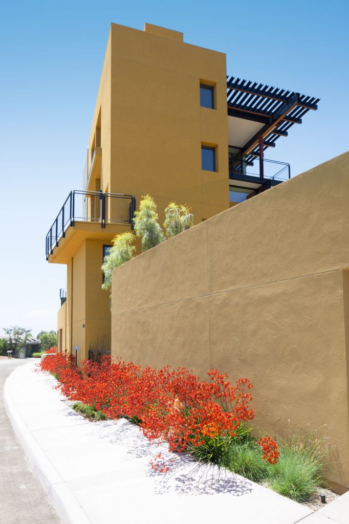 The owners and architect wanted to use this hillside site to provide an alternative to the massive grading, wide asphalt streets and water-intensive landscaping typical of the surrounding housing developments.
